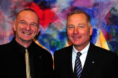 Kirchenverwaltung Hans Hümmer und Pfarrer Josef Hell (von links) sowie die