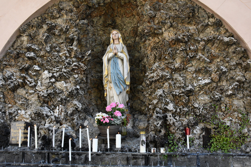 aufwärts. Am Festplatz und an der Mariengrotte der FWV-Ortsgruppe