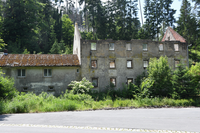 es Waldrand weiter an der ehemaligen Gaststätte vorbei.
