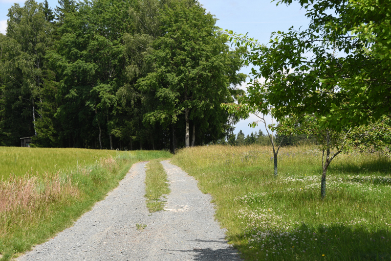 der Straße nach Grünlas führt unser Frankenwaldsteigla nach rechts