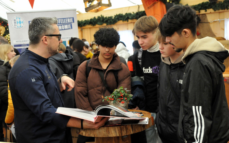 „Gastronomie, das ist mehr als Teller tragen und Kochlöffel schwingen“, sagt Alexander Schütz, Kreisvorsitzender des Bayerischen Hotel- und Gaststättenverbandes. „Bei uns kann man auch richtig groß Karriere machen“, so Schütz, der in Wartenfels in der Gemeinde Presseck den Gasthof Berghof mit dem Restaurant „Ursprung“ betreibt. Deshalb stellten er und seine Mitstreiter vom Verband beim „Recruiting Day“ alle Möglichkeiten vor, die es in der Hotellerie und Gastronomie für junge Leute gibt.