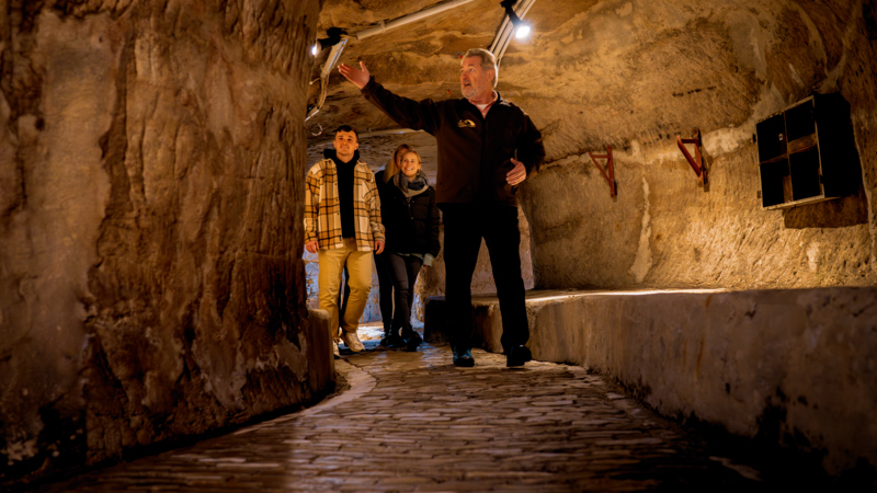 Wer gedacht hat, bei Maisel & Friends geht es ausschließlich um Bier, der hat sich getäuscht. Einen Steinwurf entfernt lädt ein weiteres Handwerk zum Staunen ein: In der „Crazy Sheep Kaffee Manufaktur“ werden feinste Kaffeebohnen geröstet. Mit Kaffeebauern aus Brasilien stehen die Röster in engem Austausch, auch sie gehören zu den „Friends“. So ist sichergestellt, dass der Kaffee unter fairen Bedingungen angebaut wird und seine Reise nach Deutschland antritt. Egal ob Americano, Italiano, Capitano, Cold Brew oder Espresso, während die Rösttrommel läuft und sich der Duft frisch gerösteter Bohnen verbreitet, schmeckt es gleich doppelt so gut. Sogar ein Hotel gibt es auf dem Gelände: Wer sich nach all den Eindrücken nach einem Rückzugsort sehnt, für den wurde das „Liebesbier Urban Art Hotel“ errichtet. Wer noch weiter in fremde Welten abtauchen will, der kann dies auch hier tun, Street Art-Kunstwerke schmücken Wände und Gänge und jedes einzelne Zimmer. Knapp 70 Künstler aus 30 Nationen sind hier ihrem Handwerk nachgegangen und haben ihrer Kreativität freien Lauf gelassen. Ein einzigartiges Gesamtkunstwerk ist hier entstanden, ein Urban Art Museum der besonderen Art. Einblicke in eine längst vergangene Zeit bietet schließlich ein Ausflug in die Bayreuther Katakomben. Diese faszinierende Welt der Felsenkeller wurde vermutlich zwischen dem 15. und 19. Jahrhundert in den Sandstein getrieben. Besucher gelangen in ein unterirdisches Reich, das in der Vergangenheit als Lagerort oder in Kriegszeiten dem Schutz diente. Info: Die Braukunstwelt ist als Teil von Maisel’ s Bier-Erlebniswelt sowohl für die individuelle Besichtigung als auch für Gruppen zugänglich. Mit einem Audioguide können Gäste die Attraktion selbstständig erkunden. Alternativ stehen fachkundige Tourguides für öffentliche Führungen bereit. Für Gruppen gibt es die Möglichkeit, die Braukunstwelt gesondert zu besuchen.