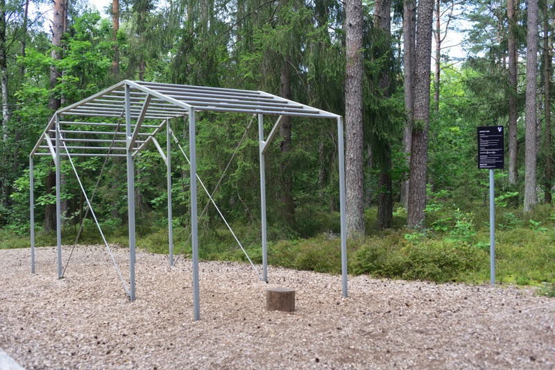 Marienweiher. Mächtige Sandsteinmartern, hohe Holzkreuze, sogar ein