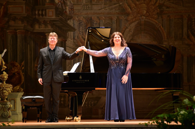 Bilder: In den Räumen der Pianofabrik Steingraeber stellte sich Roland Schwab bei einer Veranstaltung der Gesellschaft der Freunde von Bayreuth den Fragen des Publikums. Das Bild zeigt den „Tristan“-Regisseur zusammen mit der Geschäftsführerin der Gesellschaft Ina Besser-Eichler. Festspielhaus: „Einmaliger Ort im Universum“ / Stardirigent Christian Thielemann bei der Gesellschaft der Freunde von Bayreuth