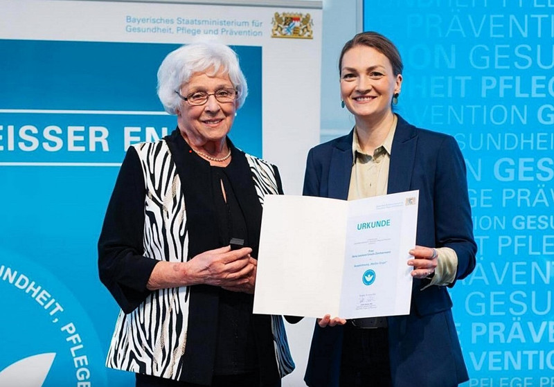 Selbst seit etwa 16 Jahren von der Krankheit betroffen hatte die gelernte Altenpflegerin 2011 die erste Gruppe zusammen mit ihrer heutigen Stellvertreterin Heidi Hahn aus Kauerndorf gegründet. Wenige Jahre zuvor war sie von Coburg, wo sie zuletzt in ihrem Beruf tätig war, nach Döllnitz gezogen. Schnell war die Zahl der Mitglieder gewachsen und so entschloss sich Ilona Zimmermann aus einer Gruppe zwei Gruppen zu machen. Die eine trifft sich jeden dritten Mittwoch im Monat im „Gründla“ in Kulmbach, die andere jeden dritten Donnerstag im Monat im Gasthaus Friedrich in Kasendorf. In Kulmbach kämen manchmal bis zu 25, in Kasendorf so etwa 15 Betroffene im Alter von jeweils 60 bis 85 Jahren. „Das zeigt, wie wichtig die Selbsthilfegruppen sind“, sagt Ilona Zimmerman. Als eine ihrer wichtigsten Aufgaben sieht sie es, neue Mitglieder umfassend zu beraten. Das kann in Fachvorträgen geschehen oder auch mit jeder Menge Informationsmaterial, das unter anderem der Dachverband, die Deutsche Restless Legs Vereinigung mit Sitz in München, zur Verfügung stellt. UM stets auf den neuesten Stand der Forschung zu bleiben, nimmt sie auch immer wieder an Weiterbildungen teil und ist inzwischen bundesweit bestens vernetzt. Auch das gesellschaftliche Leben, das Miteinander kommt nicht zu kurz. In der zurückliegenden Adventszeit hatte Ilona Zimmermann beispielsweise einen Bus zum Coburger Weihnachtsmarkt organisiert. Mit den Mitgliedern der Selbsthilfegruppe verbindet Ilona Zimmermann viel mehr als die gemeinsame Krankheit. Es seien viele Freundschaften entstanden, die einem Mut und Hoffnung schenken. Die Gruppentreffen seien für alle ein sicherer Ort und stärkten den Zusammenhalt. Da wird auch schon mal ein selbstgebackener Kuchen mitgebracht. Wer glaubt, dass es in den Gesprächen nur um RLS geht, der hat sich getäuscht. Und auch die Vorträge haben nicht immer nur die Krankheit als Thema, das gehe auch um Themen wie Patientenverfügung oder Vorsorgevollmacht aber auch um alternative Heilmethoden. Finanziert wird die Selbsthilfegruppe unter anderem durch das „Zentrum Bayern Familie Soziales“ und den für Kulmbach mit zuständigen Regionalen Runden Tisch Coburg mit Vertretern der Krankenkassen. Die Krankheit selbst beschreibt Ilona Zimmermann als Teufelskreis: „Wer die ganze Nacht nicht schlafen kann ist am nächsten Tag völlig unausgeglichen, fühlt sich schlapp und kaputt und hat schon wieder Angst vor der nächsten Nacht.“ Oft seien auch nicht nur Füße und Beine betroffen, RLS könne sich unter Umständen bis hinaus zu den Schultern ausdehnen oder etwa den Genitalbereich betreffen. RLS könne auch vererbbar sein und schon in jungen Jahren auftreten, so Ilona Zimmermann. In der Regel seien mehr Frauen als Männer betroffen. Medikamentös habe man heute gute Chancen, die meist neurologisch bedingte Krankheit in den Griff zu bekommen. Heilbar ist das Restless Legs Syndrom nicht. Für ihr seit 15 Jahren andauerndes unermüdliches Engagement ist Ilona Zimmermann vor wenigen Wochen in ihrer Geburtsstadt Bamberg von der bayerischen Gesundheitsministerin Judith Gerlach mit dem „Weißen Engel“ ausgezeichnet worden. Die Ehrung stehe symbolisch für die Wärme und Geborgenheit, die Ehrenamtliche in die Gesellschaft bringen“, sagte die Ministerin Anfang Januar bei der Übergabe der Urkunde an Ilona Zimmermann. Bild: Mit der Auszeichnung „Weißer Engel“ hat die bayerische Gesundheitsministerin Judith Gerlach die Gründerin und Leiterin der beiden Kulmbacher Selbsthilfegruppen für Betroffene des Restless Legs Syndrom, Ilona Zimmermann aus Döllnitz, ausgezeichnet. Hauptamt und Ehrenamt Hand in Hand / „Mini-KU“: Bei Manuela Schilling laufen viele Fäden zusammen