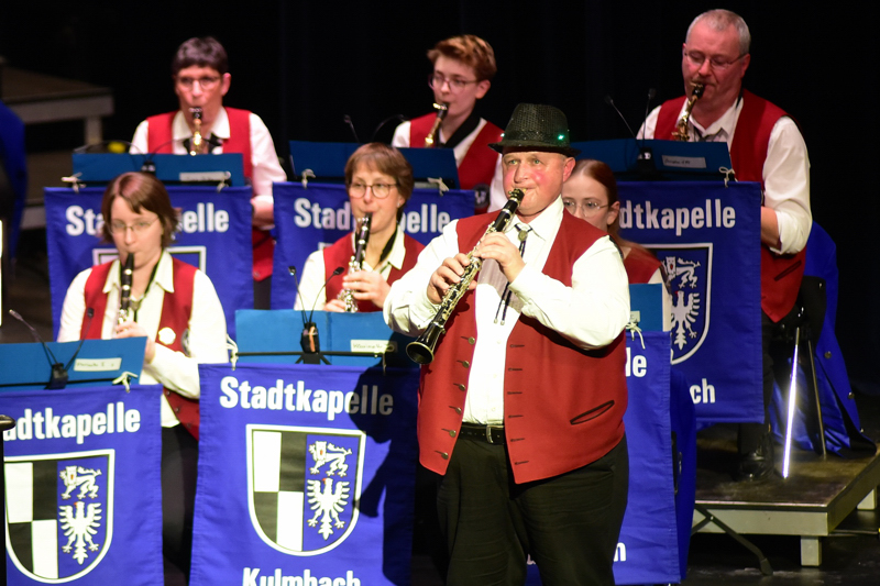 Ein wenig hat er schon zurückgerudert. Beispielsweise gibt es mit den „Kulmbocher Stollmusikanten“ heuer nur noch ein einziges Konzert, kurz vor Weihnachten am 19. Dezember in der Spitalkirche. Da gibt es dann auch keine Bierfesthits, sondern eher getragenes, ein eigenes Arrangement von „Drei Haselnüsse für Aschenbrödel“ beispielsweise oder „Weihnachten in Kulmbach“, eine Eigenkomposition. Langweilig wird es Roland Schaller trotzdem nicht, wenn er im heimischen Tonstudio gerade an Arrangements feilt, Noten für den Musikverein Burghaig schreibt, den mittlerweile sein jüngster Sohn Maximilian leitet. Überhaupt hilft er, wo er nur kann, gerne aus. Bei der Stadtkapelle Kulmbach gehört er seit Jahrzehnten zum festen Stamm und ist auch immer wieder für das eine oder andere Solo zu haben. Roland Schaller spielt die Klarinette, sein Hauptinstrument. Er kennt sich aber auch mit dem artverwandten Saxofon aus, spielt Tenorhorn Klavier und sogar die Steirische Harmonika. Angefangen hat das alles in der zweiten Klasse mit der Blockflöte. Schon der Großvater und der Vater seien musikalisch gewesen. Sein allererster Auftritt war mit der Blockflöte bei den Naturfreunden. Sogar der angesehene Bayreuther Musikprofessor Demetrius Popp gehörte zu seinen Lehrern und sorgte dafür, dass Roland Schaller am Wettbewerb „Jugend musiziert“ teilnahm. Von da an ging es steil bergauf. Seine erste Formation waren die „Kulmbocher Spitzbum“. „Wir haben sogar bei der Zapferprüfung von Günther Limmer gespielt“, erinnert er sich. Das Interesse an der Musik wurde immer größer. Roland Schaller legte die Bronze-, Silber- und Goldprüfung des Nordbayerischen Musikbundes ab, machte sein Diplom als staatlich geprüfter Dirigent und stand zehn Jahre lang an der Spitze des Musikvereins Weiher. In diese Zeit fällt auch eine ganz besondere Begegnung, die mit Franz Trojan, dem 2021 verstorbenen Schlagzeuger der Spider Murphy Gang. Der hatte nämlich beim Musikverein Weiher sein Handwerk gelernt. Als Franz Trojan in den 1990er Jahren beim Jahreskonzert des Musikvereins für 25 Jahre Zugehörigkeit ausgezeichnet wurde, hatte Roland Schaller die Ehre, ihm die Urkunde auszuhändigen. Roland Schaller hatte sich damals etwas ganz Besonderes ausgedacht. Er arrangierte den Spider-Murphy-Hit „Schickeria“ für Blasorchester und da ließ es sich Franz Trojan nicht nehmen, spontan mitzuspielen. Überhaupt ist Roland Schaller nicht nur in der Blasmusik verankert. Er mag genauso gerne klassische Musik, oder auch Rock, besonders von Queen. Auf seiner Solo-CD Klarinettenträume gibt es auch instrumentale Aufnahmen von Songs anderer Interpreten: Phil Collins etwa, Elton John, Rod Stewart oder Stevie Wonder. Aber auch das Traditionelle liegt ihm: Mit den Stollmusikanten war er schon bei den Brettlspitzen des Bayerischen Fernsehens zu Gast, er musizierte auf der „Oidn Wiesn“ am Fuße der Bavaria beim Münchner Oktoberfest, trat bei den Wirtshausmusikanten beim Hirtzinger mit Moderatorin Traudl Siferlinger auf und war immer wieder mal im Fernsehen präsent. Kaum zu glauben, dass Roland Schaller auch noch einen Brotberuf hat: Er ist Betriebselektriker bei den Kulmbacher Stadtwerken. Bild: Gefragter Solist: Roland Schaller mit seiner Klarinette bei einem Konzert der Stadtkapelle Kulmbach. „Musotopia“: Ambitioniert, anspruchsvoll und nicht alltäglich / Alexander Kallwies ist Organist, wirkt in der Kantorei mit und gründete einen Kulturverein