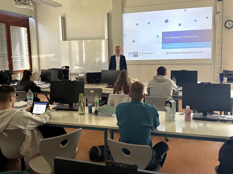 „In unserer Schule haben wir die Möglichkeit über die Wahlprogramme, in der Klasse, zu diskutieren und verschiedene Kandidaten besser kennenzulernen“, sagt Jasmin Martin, Schülersprecherin am Beruflichen Schulzentrum in Kulmbach. Dort lerne man auch, wie die Europawahl abläuft, wofür sie da ist, und man habe die Möglichkeit an den „Junior-Wahlen“ teilzunehmen, so 19-Jährige, die im zweiten 2. Lehrjahr zur Industriekauffrau bei Glen Dimplex Deutschland tätig ist und die in Bayreuth wohnt-. Während der zurückliegenden Tage habe sie auch mit ihren Azubi-Kollegen und ihren Freunden darüber gesprochen. „Wir sind uns einig, dass es wichtig ist, wählen zu gehen, da sich in der Politik dringend etwas ändern muss.“ Es sei wichtig, sich ausreichend zu informieren und sich eine eigene Meinung zu bilden. „Uns ist es wichtig, dass der Frieden in Deutschland bestehen bleibt und dass die Wirtschaft wieder aufgebaut wird, gleichzeitig soll Europa gefördert und weiter für die Gleichberechtigung und fürs Klima gekämpft werden, damit auch zukünftige Generationen eine schöne und friedliche Zukunft vor sich haben“, so Schülersprecherin Jasmin Martin. „Wir spüren, dass großes Interesse da ist, bei der Wahl teilzunehmen“, sagt Alexander Battistella, Schulleiter des Beruflichen Schulzentrums Kulmbach. Dort gebe es mehrere Initiativen, um potenzielle Jungwähler anzusprechen. Alexander Battistella berichtet von einer Plakatausstellung und von einer „Juniorwahl“ für alle Schularten im Haus, bei der rund 450 Schüler teilnehmen. „Wir simulieren die Europawahl, damit die Schüler schon mal wissen, wie so eine Wahl abläuft und wer auf dem Wahlzettel steht.“ Das Ganze sei eine Initiative des Kulturministeriums, die von der Schule genutzt werde. Ziel sei es, dem Erstwähler die Scheu vor dem Wahlgang zu nehmen und die jungen Leute aufzuklären. Jungwähler dazu zu bewegen, an der Wahl teilzunehmen, das sei auch das Ziel einer zweistündigen Veranstaltung gewesen, die von der Industrie- und Handelskammer für Oberfranken in einer Bautechnikklasse der Berufsschule durchgeführt wurde. Die IHK habe die Veranstaltung vor allem in einen wirtschaftlichen ökonomischen Kontext gestellt. Auch ein Europa-Quiz habe es gegeben, um so einiges über die Europäische Union zu erfahren. Damit Europa und seine Bedeutung für den Wirtschaftsstandort Oberfranken auch für die jüngere Generation ein Stück näher rückt, hat die IHK für Oberfranken Bayreuth in Hof, Münchberg, Rehau, Kronach, Kulmbach und Forchheim eine EU-Projektwoche mit Berufsschülern organisiert. Das Ziel der Projektwoche: Unternehmerinnen und Unternehmer sollen mit jungen Menschen ins Gespräch über Europa und europäische Wirtschaftspolitik kommen und auch zeigen, wie wichtig es ist, sich an der Europawahl 2024 zu beteiligen, erklärt Pressesprecher Peter Belina. 2001 gründete Michael Bitzinger, Geschäftsführer der Bitzinger GmbH aus Hof, sein Unternehmen mit aktuell 16 Mitarbeitern, seit zwei Jahren ist er außerdem Vorsitzender des IHK-Gremiums Hof und Vizepräsident der IHK für Oberfranken Bayreuth. Sowohl privat als auch als Unternehmer ist er von den Vorteilen der EU überzeugt, auch wenn manches extrem frustrierend sei, wie etwa die überbordende EU-Bürokratie. In seinen vier Diskussionsrunden mit 11. Klassen in den Berufsschulen Hof, Münchberg und Rehau macht er aber auch deutlich, warum er trotz allem ein überzeugter Europäer ist. Bitzinger: „Die Errungenschaften der EU wie die gemeinsame Währung, die Reisefreiheit und der freie Waren- und Dienstleistungsverkehr sind für mich von unschätzbarem Wert. Diese Vorteile nutze ich sowohl privat als auch beruflich, zum Beispiel das kostenlose Mobilfunk-Roaming während einer Workation.“ In der Schulstunde zeigt Bitzinger den Auszubildenden mit konkreten Beispielen aus seinem Unternehmen, was die EU ganz allgemein, aber auch für sein Unternehmen, seine Produkte und seine Mitarbeiter bedeutet und verändert hat. „Dabei betrifft die EU aber nicht nur Unternehmer, sondern auch die Auszubildenden selbst“, so Bitzinger. Denn gerade in einem globalisierten Arbeitsumfeld würden gute berufliche Qualifikationen und Fremdsprachenkenntnisse immer wichtiger. Auch biete die EU Auszubildenden und jungen Fachkräften durch Austauschprogramme wie ERASMUS die Chance, Lern- und Arbeitserfahrung im EU-Ausland zu sammeln. „Für mich war es unglaublich bereichernd zu sehen, wie umfassend das Wissen über die EU bereits ist und was die junge Generation von der EU erwartet!“, so Bitzinger. „Aus meiner Sicht ist die EU großartig. Deshalb wünsche ich mir, dass die EU das Erreichte bewahrt und wir gemeinsam unsere Zukunft aktiv gestalten.“ Bild: Schulstunde der besonderen Art: Der Hofer Unternehmer Michael Bitzinger bringt Berufsschülern Europa bei. Kurze Wege für das Miteinander von Wissenschaft und Wirtschaft / Staatskanzleichef Florian Herrmann möchte Realisierung des Regionalen Innovationszentrums unterstützen
