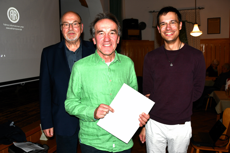 Kreisvorsitzender Mathias Schneider hatte zuvor von einer Zeit gesprochen, in der Heilpflanzen mehr als nur Gewächse, sondern Teil eines weltumspannenden Kulturgutes und Ausdruck einer faszinierenden Verbindung von Medizin, Glaube und Mythos waren. Zum Vortrag mit Adrian Roßner waren knapp 140 Mitglieder gekommen. Mehr Stühle gab es im Gasthof Geuther nicht. Sogar eine Warteliste wurde aufgelegt, was die Popularität von Adrian Roßner eindrucksvoll unterstreicht. Bei der Veranstaltung wurde Roland Ramming für seine 50jährige Gartenbauvereins-Mitgliedschaft mit der „Ehrennadel mit Kranz“ vom Bayrischen Landesverband für Gartenbau und Landespflege und dem Kreisverband Kulmbach ausgezeichnet. 35 Jahre davon war er Vorsitzender der Dorfgemeinschaft Schlömen. Kreisvorsitzender Mathias Schneider würdigte die herausragenden und langjährigen Leistungen von Roland Ramming, der 1991 als 1. Vorsitzender die Führung der Dorfgemeinschaft Schlömen übernommen und den Zusammenschluss maßgeblich geprägt hatte.